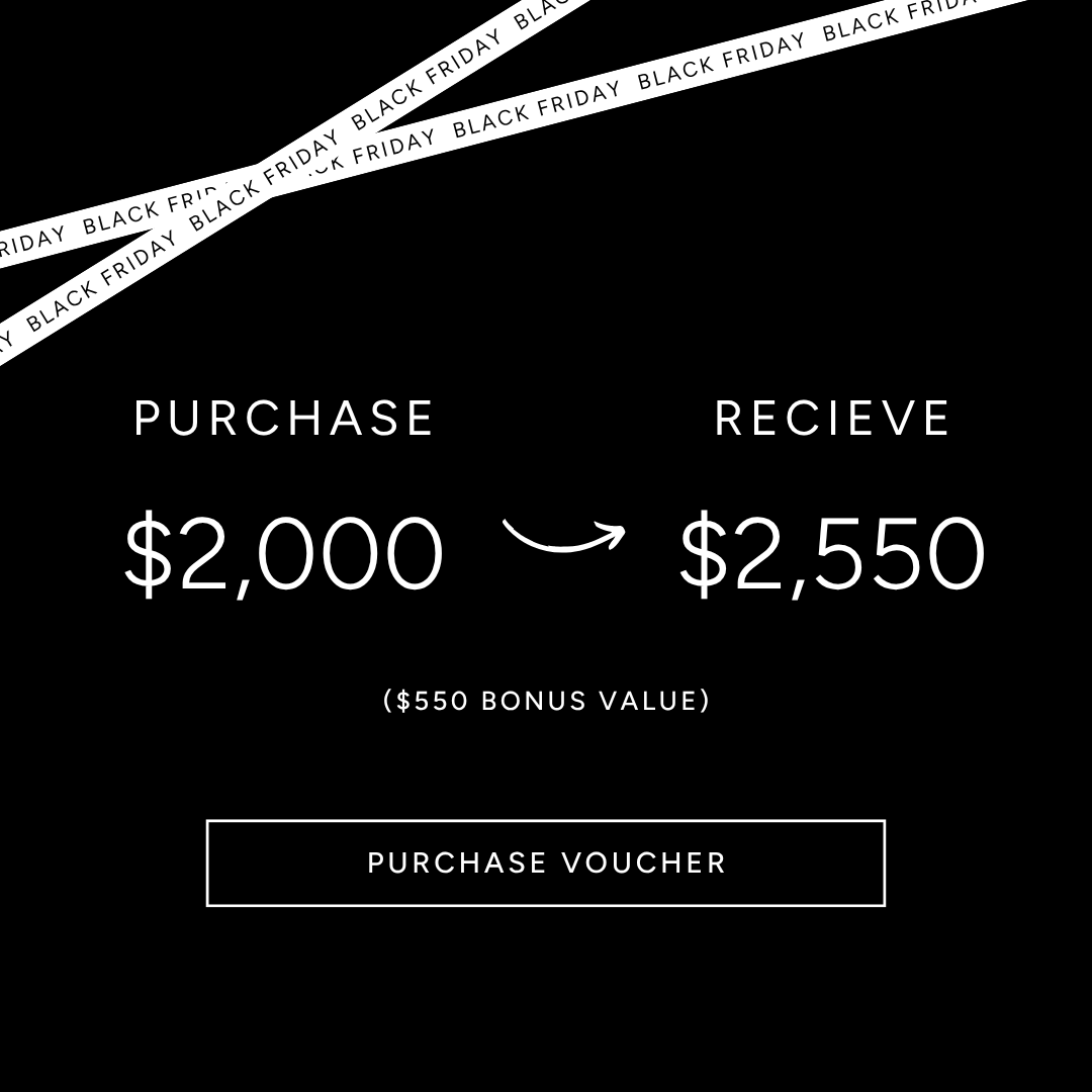Prepaid vouchers are non-refundable and not redeemable for cash. Bonus applies to dermal treatments only. Not combinable with other percentage-based promos. Bookings essential, subject to availability. Offer valid: 18–29 November (Black Friday) + 1 December (Cyber Monday).